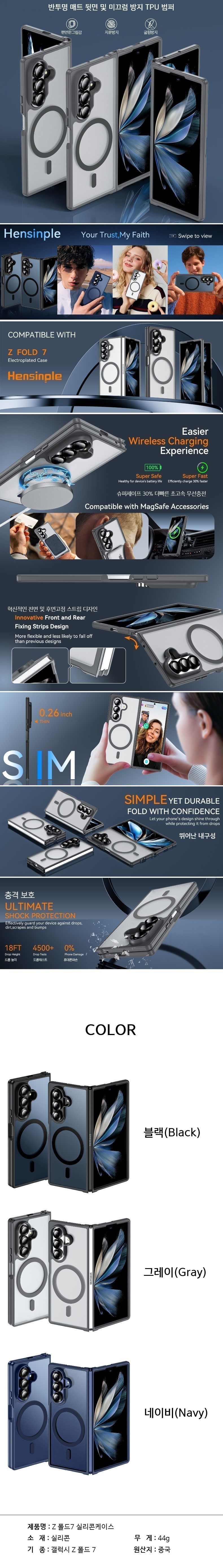 풀커버 갤럭시 Z 폴드 7 실리콘 하드 케이스 오토 한지 보호 투명