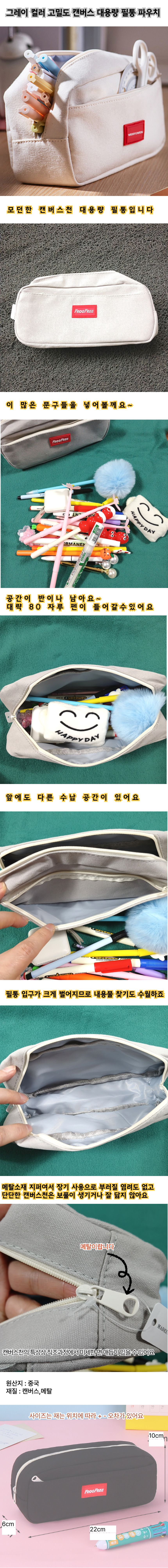 그레이 컬러 고밀도 캔버스 대용량 필통 파우치